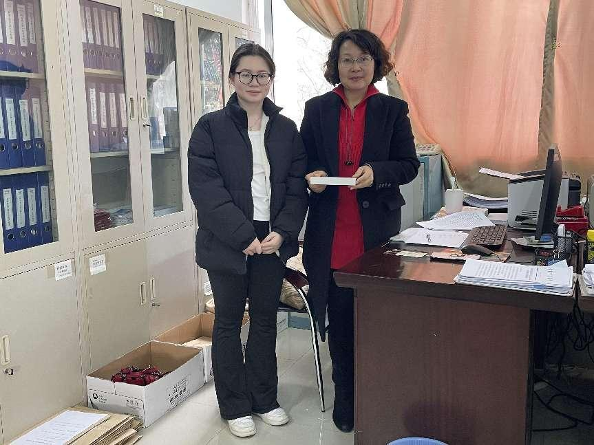学生代表向办公室老师赠送节日礼物