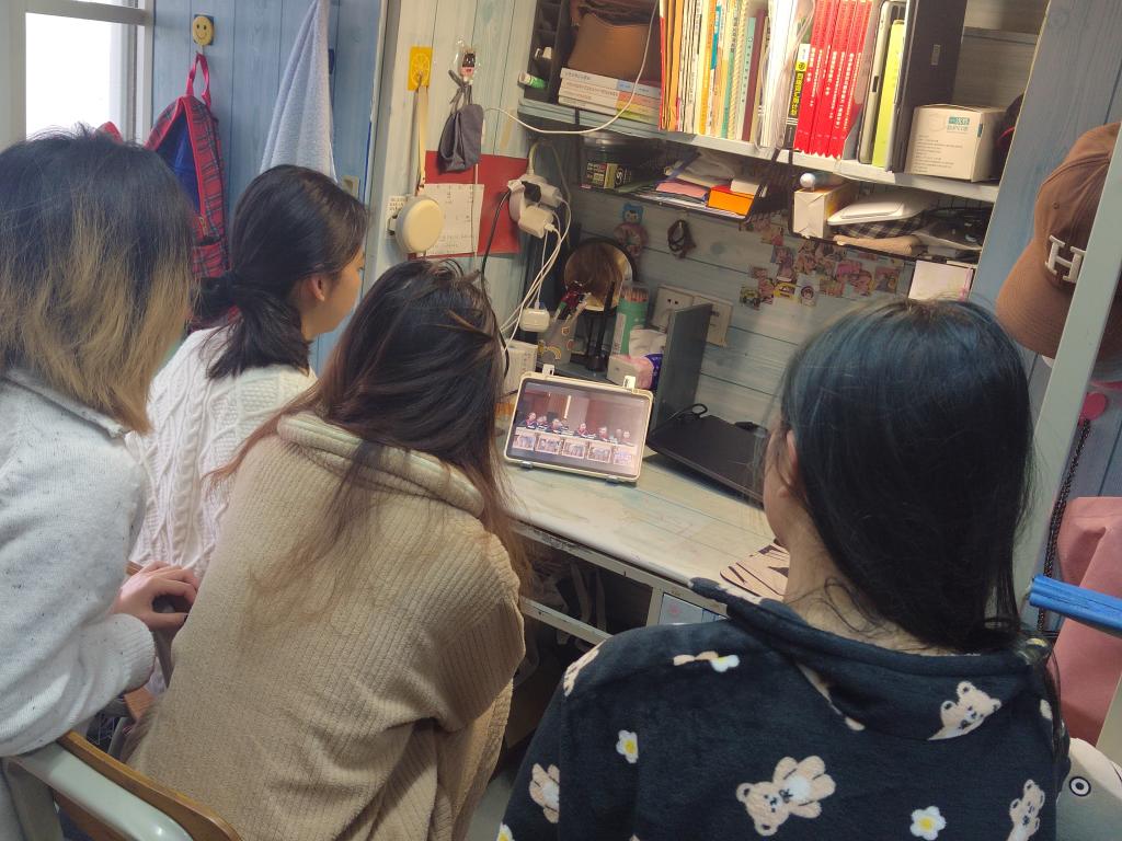 学生在宿舍观看学习