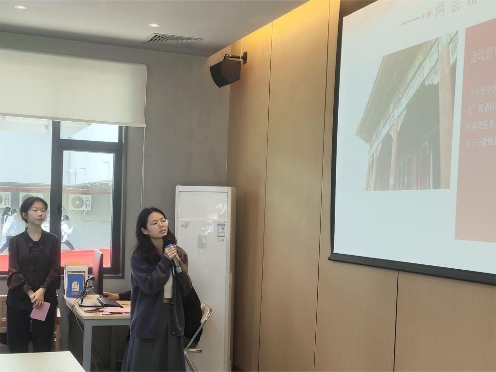 2021级数字媒体艺术叶子怡则带领大家学习“两会”中的重要内容——新质生产力,详细解释了新质生产力这一概念,新质生产力的关键是依靠创新驱动,使党员们了解了新质生产力的发展不仅推动产业升级和发展,更提高人民获得感和幸福感。