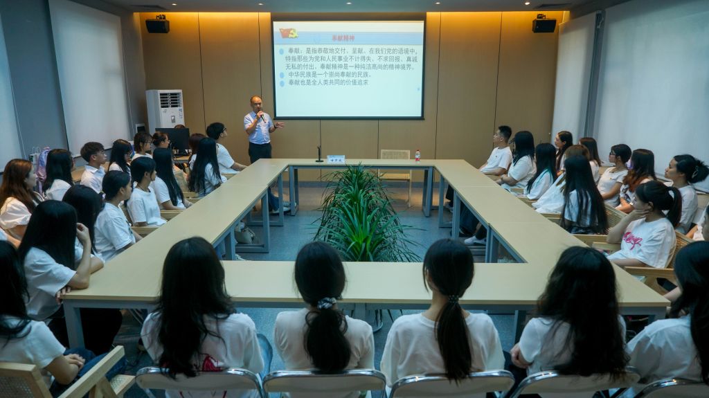 5月16日下午,城市设计学院在杉湖家苑一站式学生社区开展“青年马克思主义者培养工程”大学生骨干培训班(青马班)理论课程。本次课程由学院党总支书记甘华成主讲,学院团总支书记刘永涛,团总支学生会主席团、书记团成员以及第五期青马班全体成员参会。