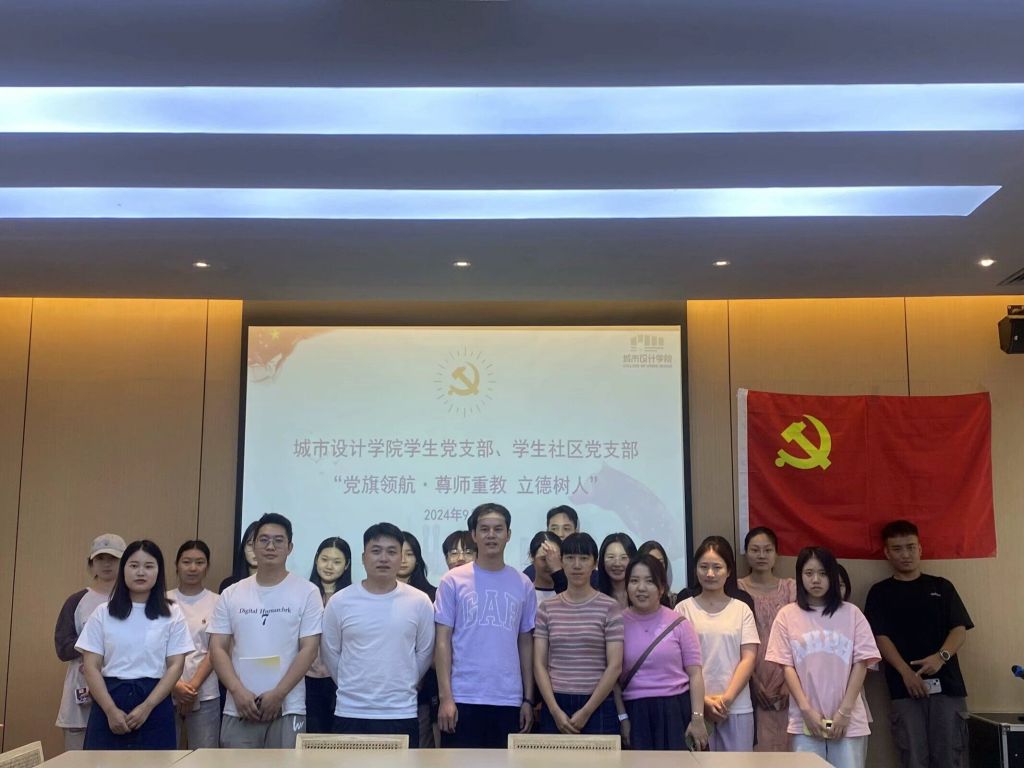 9月25日中午,城市设计学院学生党支部、学生社区党支部在学生一站式社区开展“党旗领航•尊师重教 立德树人”主题党日活动,全体党员共同参加此次活动。