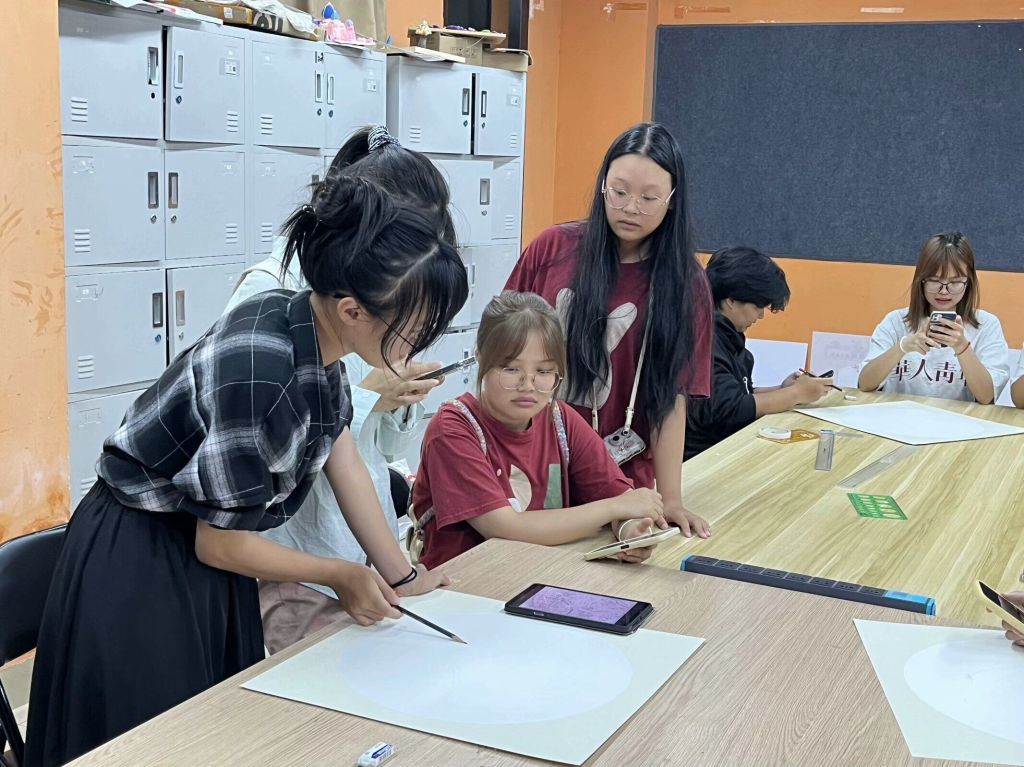 随后,与会党员与新生们共同参与了“铸牢中华民族共同体意识”主题绘画创作。同学们纷纷发挥设计专长,将自身对中华民族共同体的理解融入画作之中。