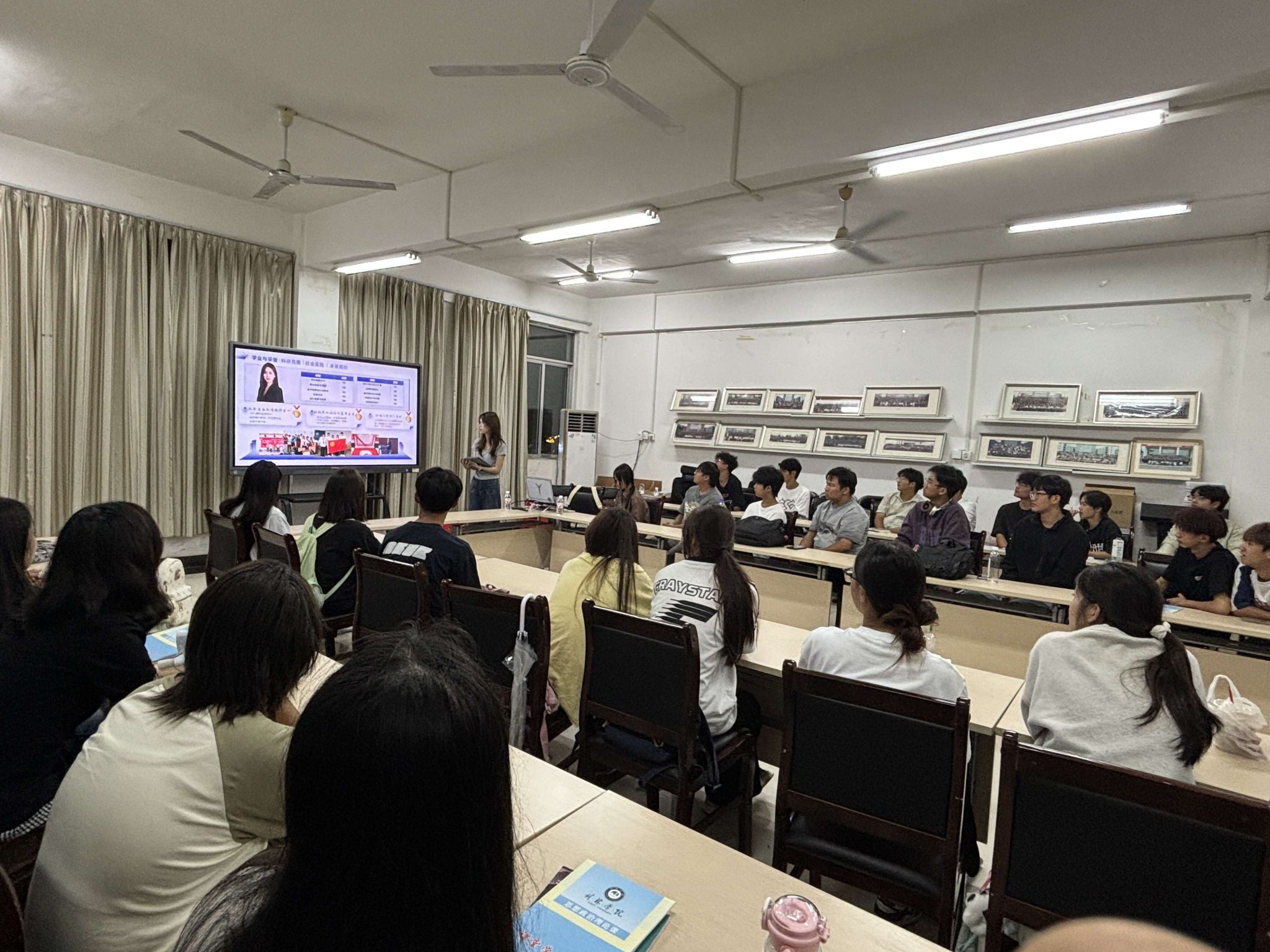 随后,彭海薰以《道阻且长,行则将至》为主题,结合自身丰富的专业竞赛获奖经历,从“学业情况、科研竞赛、社会实践、未来规划”四个方面展开分享。她提醒新生要提前做好未来规划,明确每一个阶段的目标,为四年大学时光筑牢根基。