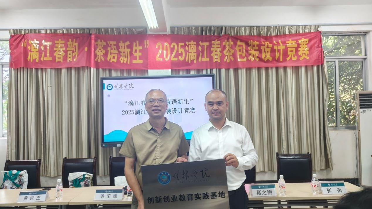 9月29日下午,城市设计学院与桂林漓江茶厂有限公司共同举办“漓江春韵·茶语新生”2025漓江春茶包装设计竞赛颁奖仪式。桂林漓江茶厂有限公司董事长黄荣雄,学院党总支负责人、教学副院长等校内外嘉宾,以及学院视觉传达专业师生代表共60多人参会。颁奖仪式在嘉善楼213教室开展。