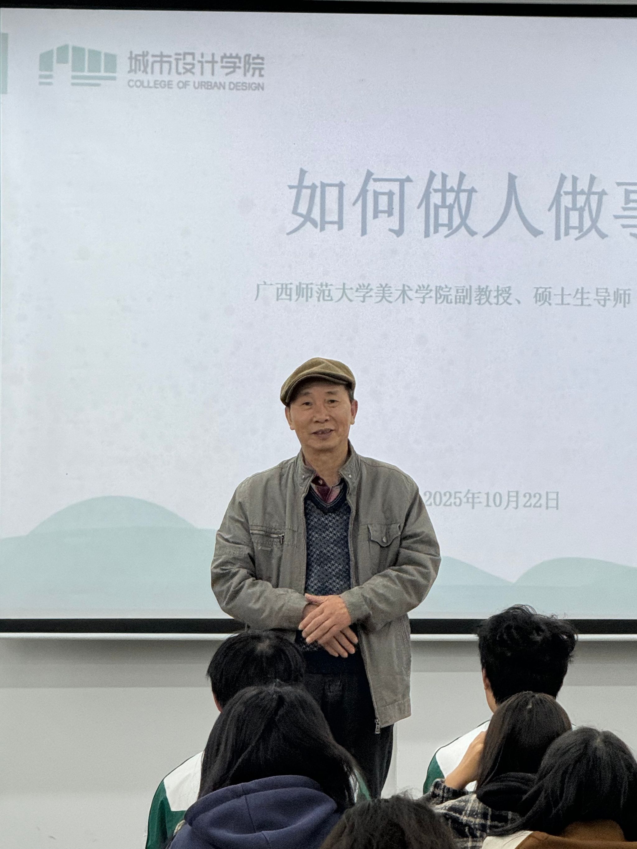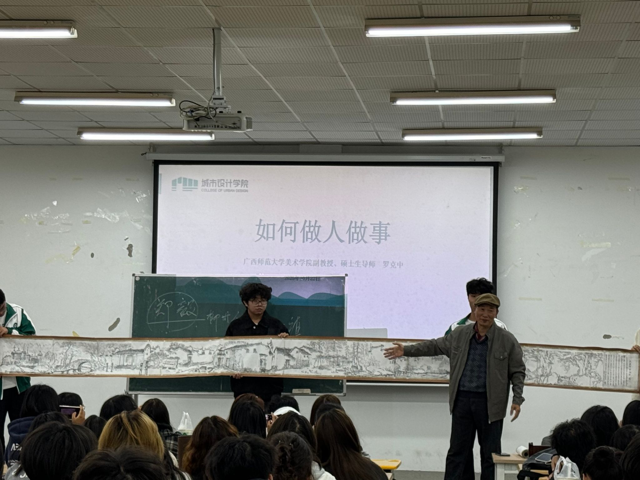 为引导2025级新生科学规划大学生活,明确成长路径,10月22日下午,城市设计学院在嘉善楼132教室举办了以“大学生成长与发展”为主题的专题讲座。学院特邀广西师范大学美术学院罗克中教授担任主讲嘉宾,全体2025级新生参加了此次活动。