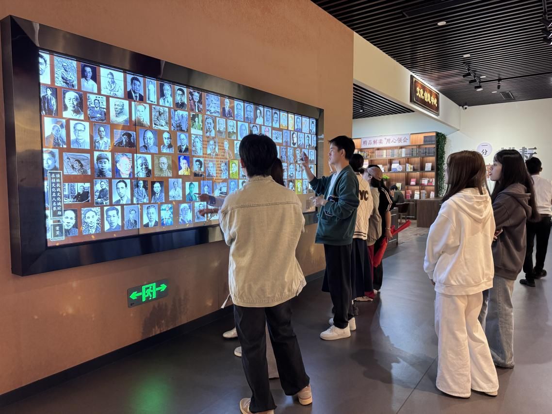 随后,与会人员跟随讲解员的讲解,依次参观了“文化堡垒 中流砥柱”“名士荟萃、文化抗战”“功昭千古、精神永存”三大展区。展区通过丰富的历史图片、实物展陈和场景复原,让大家深入了解了郭沫若、茅盾、艾青等文化名人在桂林抗战文化的实践,深刻感受到中国共产党在抗战文化运动中的中流砥柱作用。