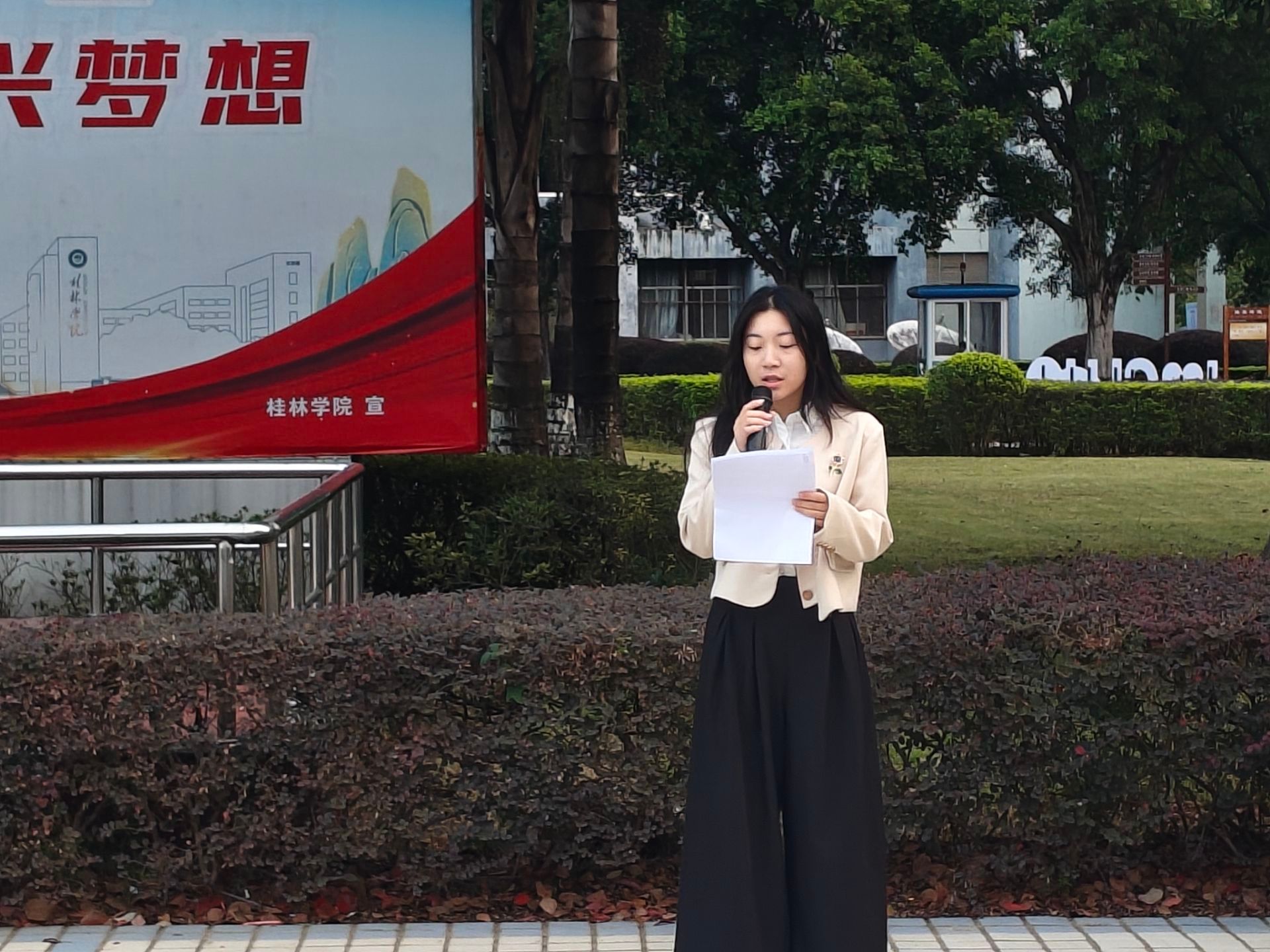 辅导员梁茜瑜进行国旗下的讲话