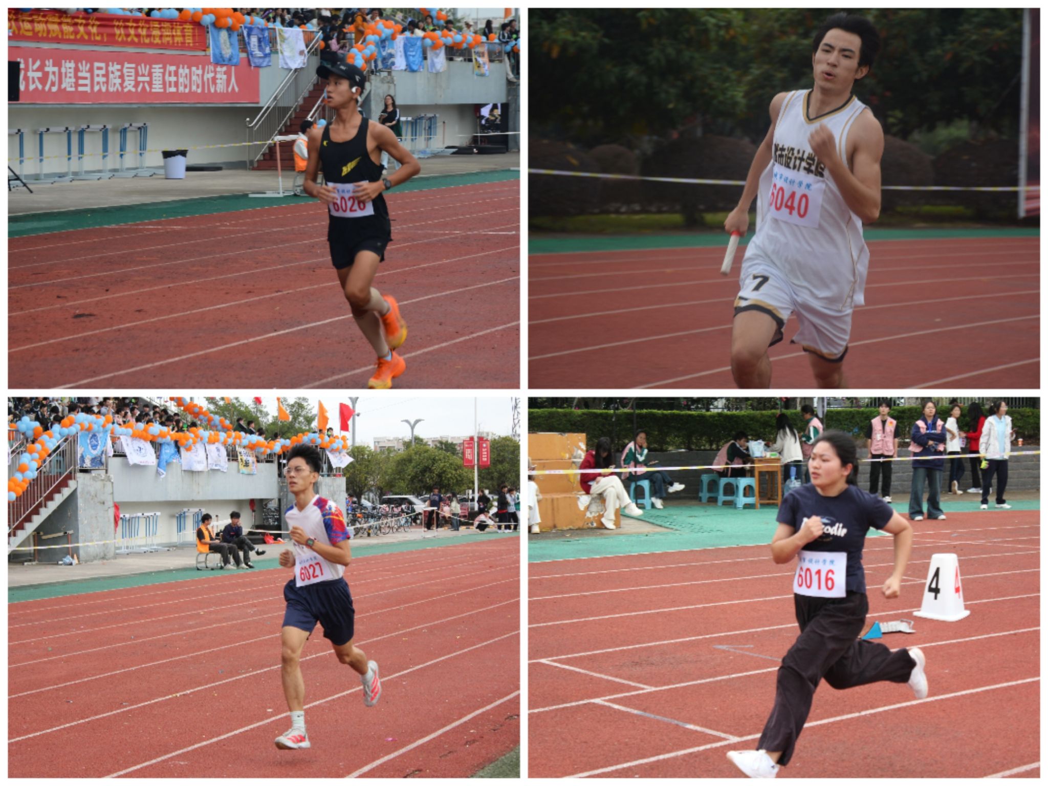 赛事期间,学院运动员在多个项目中屡创佳绩。学生运动员中,袁迪包揽男子1500米和3000米冠军,展现了卓越的中长跑实力;黄思淇在跳远与三级跳远项目中双双夺魁,显示出强劲的爆发力。女子组同样表现不俗,罗青青获1500米第一名,马鳗琳夺得跳高冠军。接力项目中,男子4×100米与4×400米两个项目均取得第三名的好成绩,体现出良好的团队协作能力。