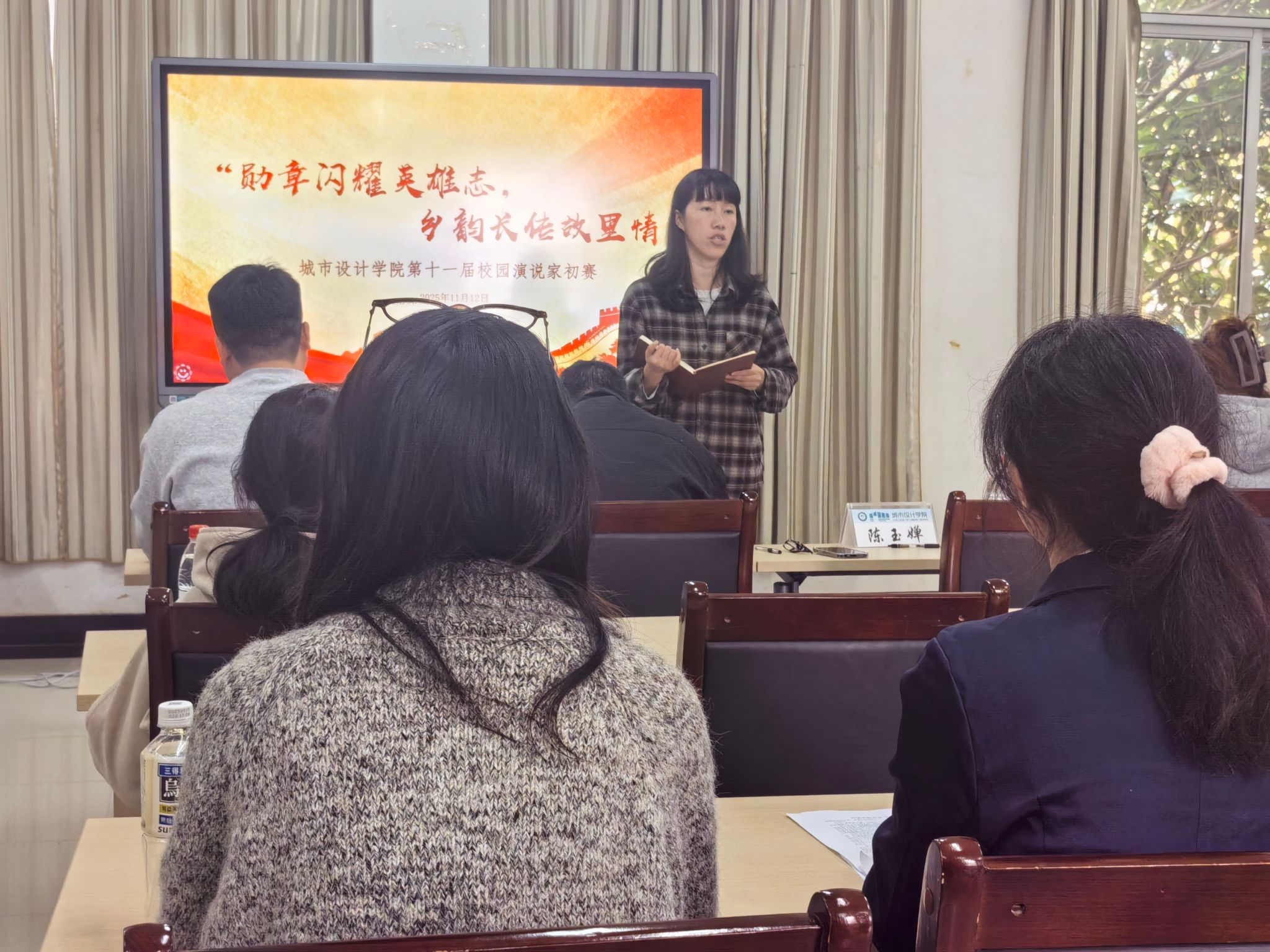 11月12日下午,城市设计学院在嘉善楼213教室举办第十一届“勋章闪耀英雄志,乡韵长传故里情”校园演说家初赛。学院党总支副书记、辅导员出席活动并担任评委。
