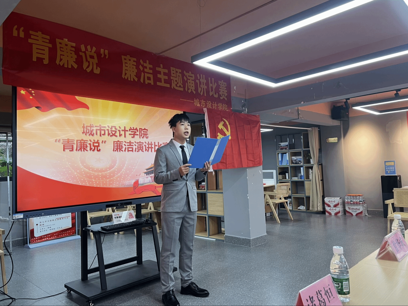 为学习贯彻习近平总书记关于党的自我革命的重要思想,11月18日上午,城市设计学院在杉湖家苑一站式学生社区举办“青廉说”主题演讲比赛初赛,学院领导、师生代表参加活动。