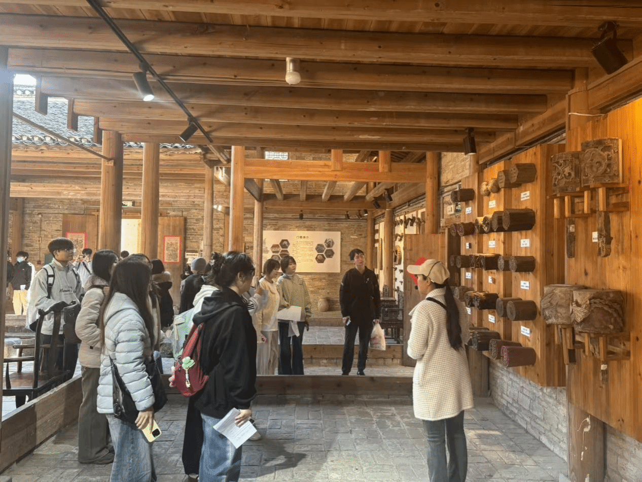 调研过程中,学生在专业教师与实践基地专业讲解人员的协同指导下,深入分析了东漓古村的建筑聚落布局、地域文化特征以及构造技术细节。通过实地调研、访谈记录和案例研讨,同学们系统学习了桂北传统建筑的营造智慧,并结合所学专业知识,探讨了古村在产业融合、空间活化方面的可持续发展路径。活动注重理论联系实际,使学生在观察与思考中,不仅掌握了建筑构造的核心知识,还深刻体会到乡土文化传承与创新在规划设计中的重要意义。