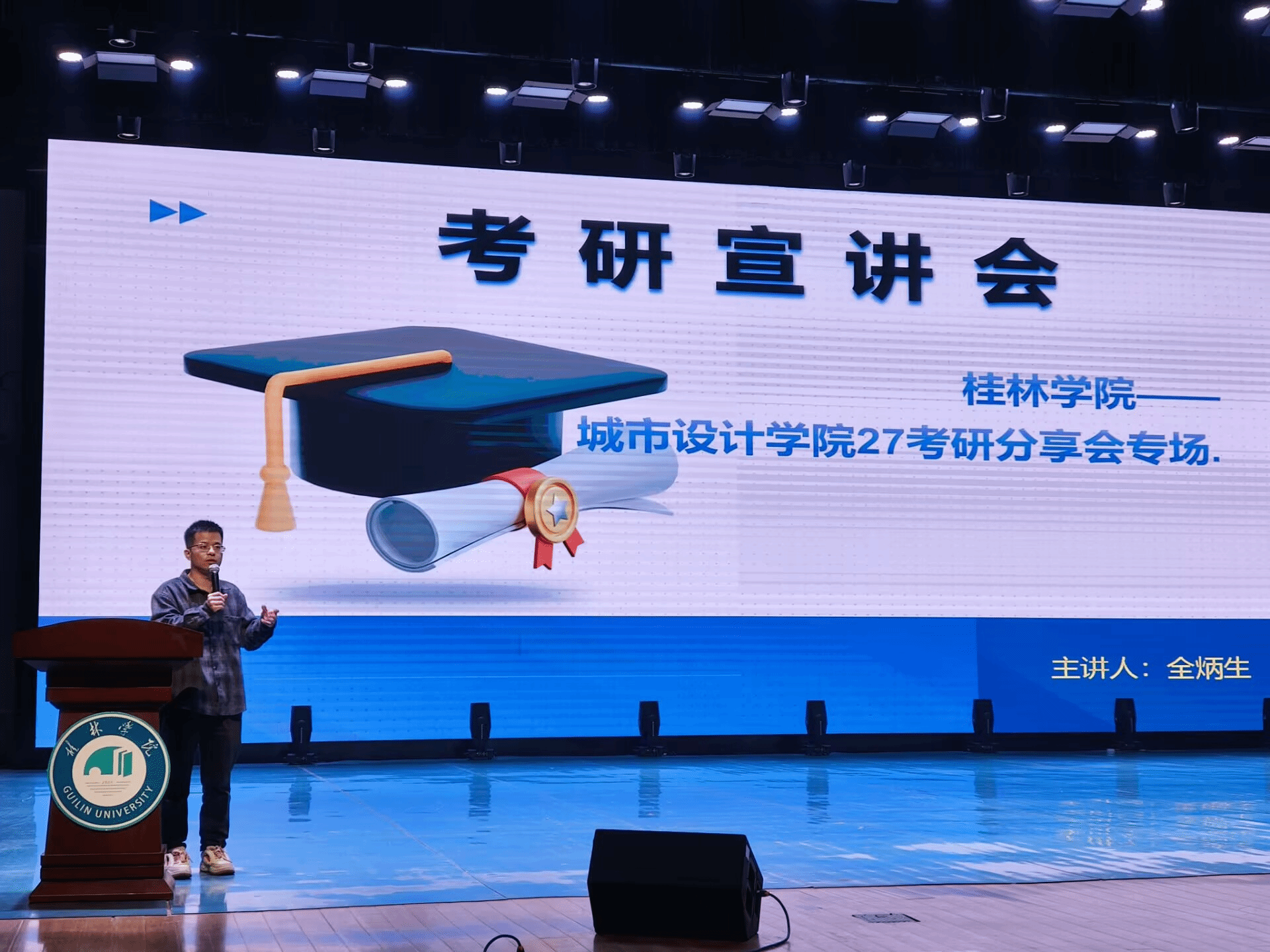 为引导学生树立升学意识,科学规划备考路径,12月9日下午,城市设计学院在弘善讲堂开展考研宣讲会。宣讲会由广西雅梧教育咨询有限公司全炳生主讲,2023级全体设计学类学生参加。