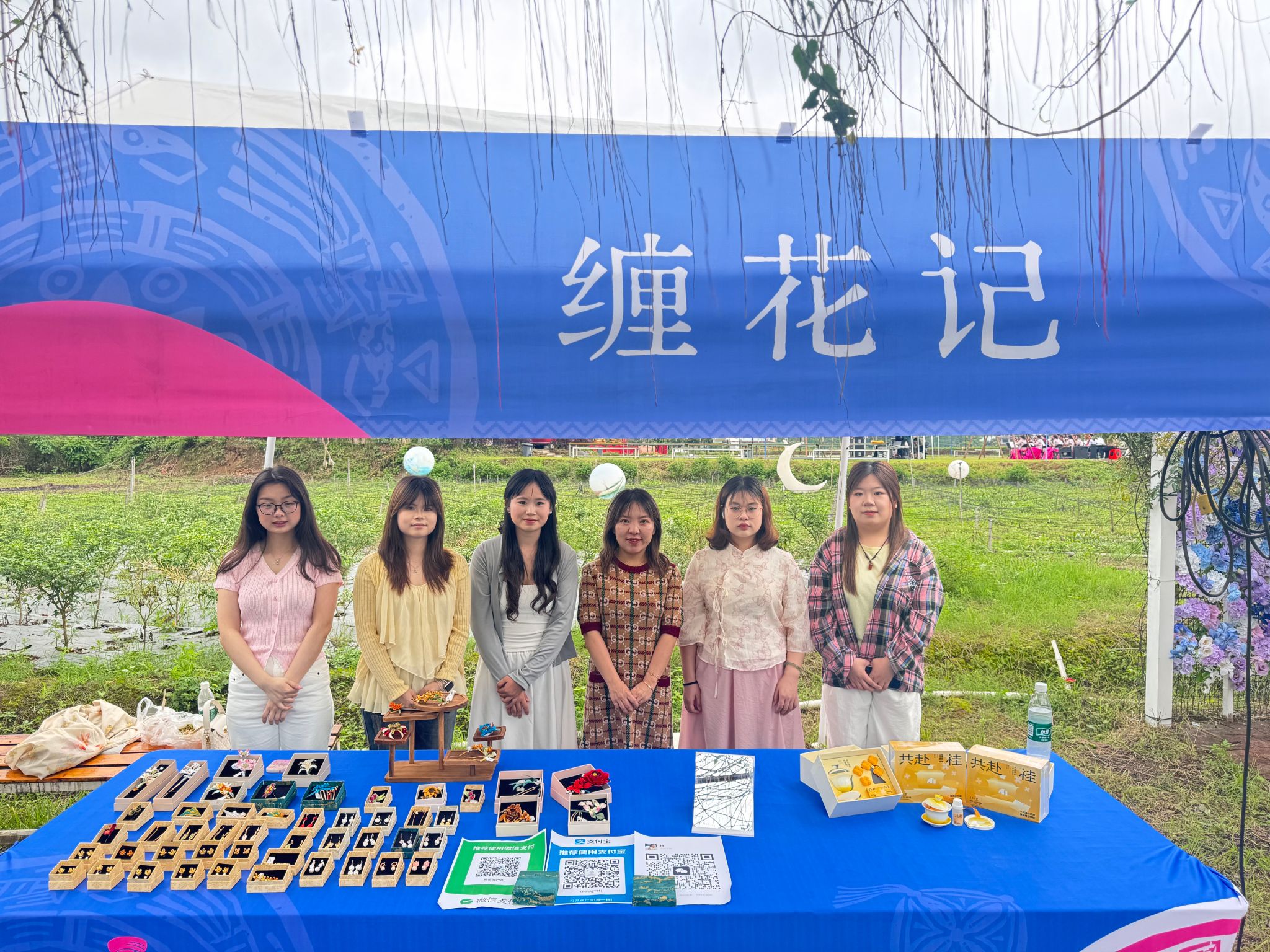 阳朔遇龙河畔非遗缠花手工展位合影