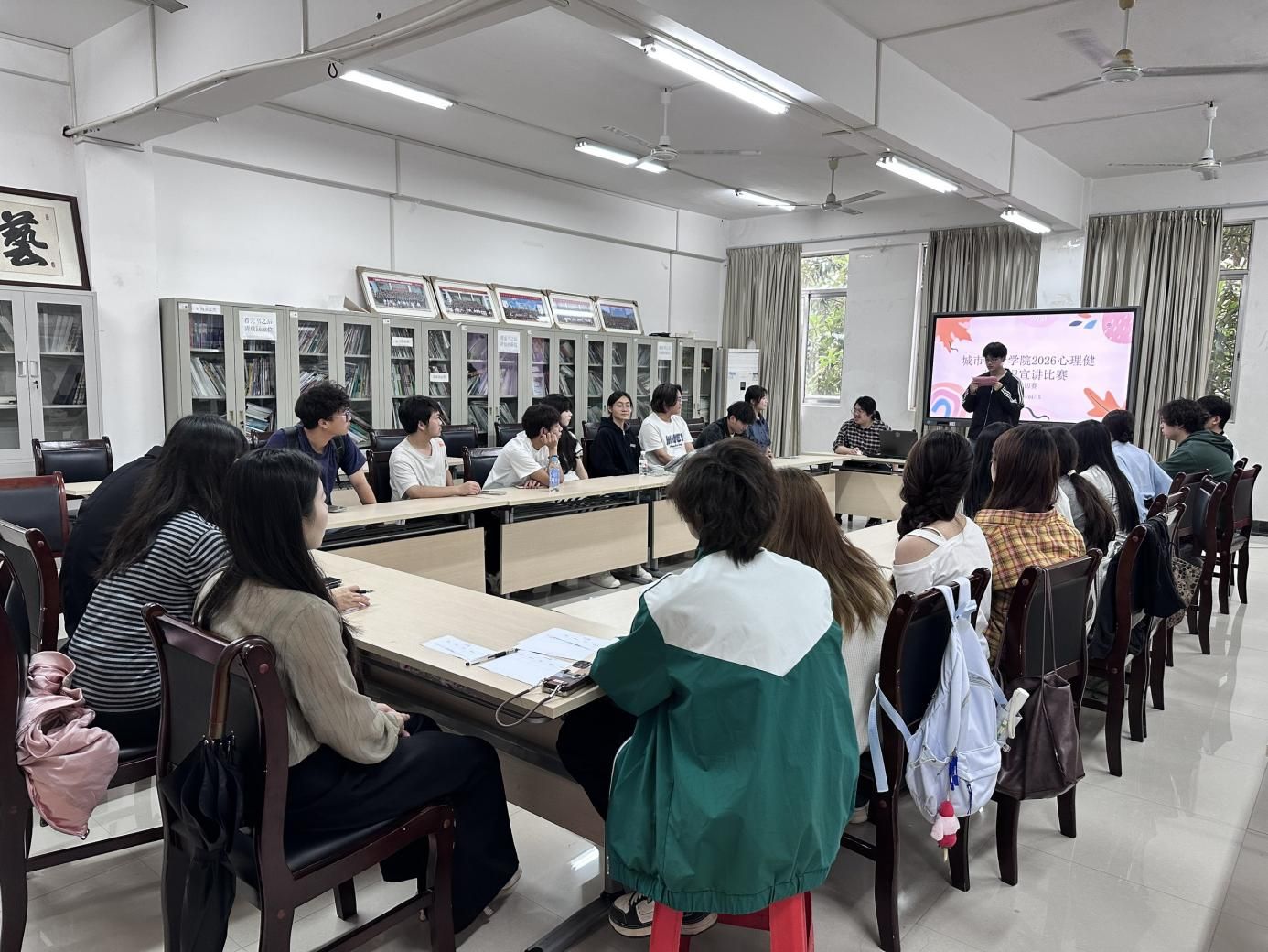 为深入贯彻学校心理健康教育工作部署,4月21日中午,城市设计学院在嘉善楼213教室举办“2026年大学生心理健康知识宣讲比赛”院内选拔赛。学院党总支副书记、辅导员代表及各班参赛学生代表共同参与了此次活动。