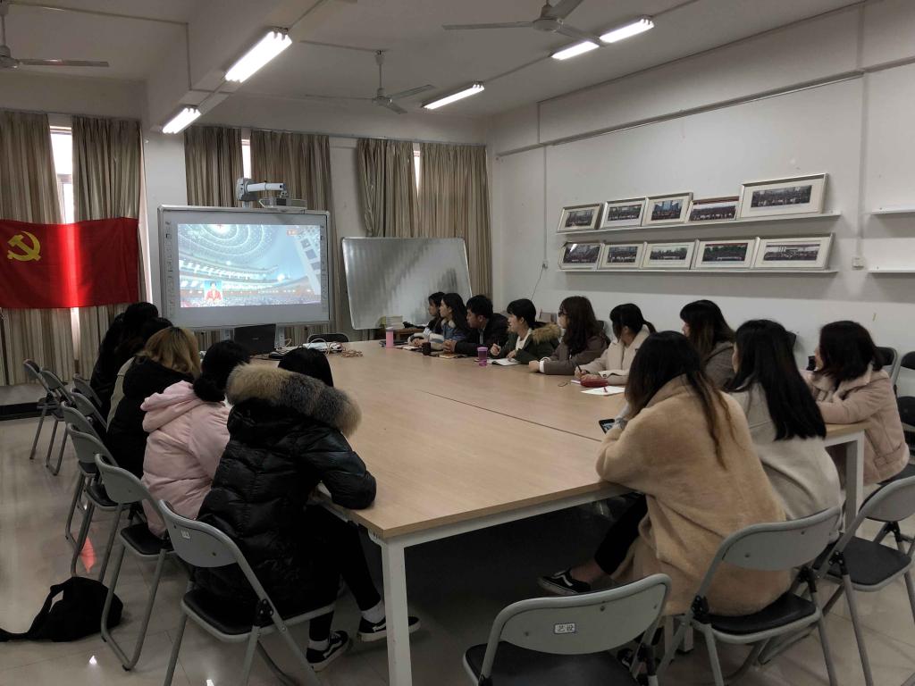 为深入学习贯彻“两会”精神,增强党员的社会责任感和使命感,设计学院党总支委员、全体辅导员以及在校的全体学生党员于3月5日上午在嘉善楼213会议室共同观看了十三届全国人民代表大会第二次会议开幕式直播并讨论交流。