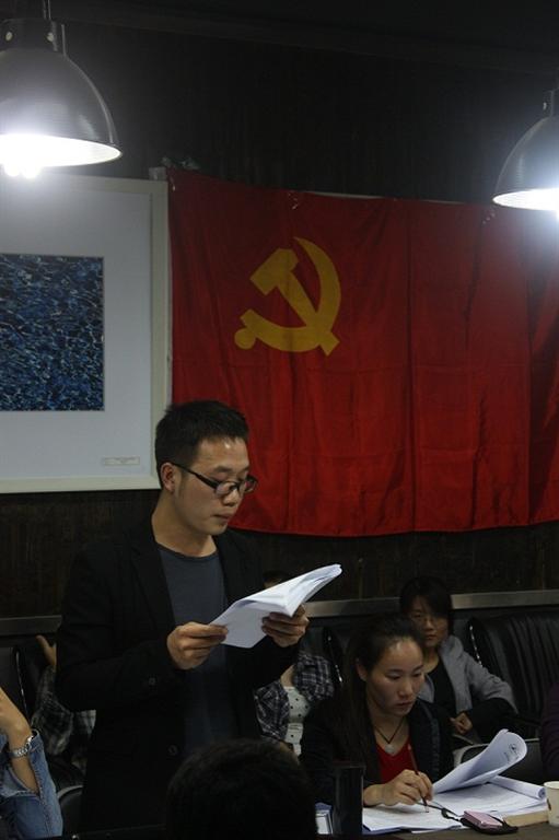 图片说明:换届选举大会筹备——艺术设计系党总支书记赵美川同志宣读换届选举大会精神