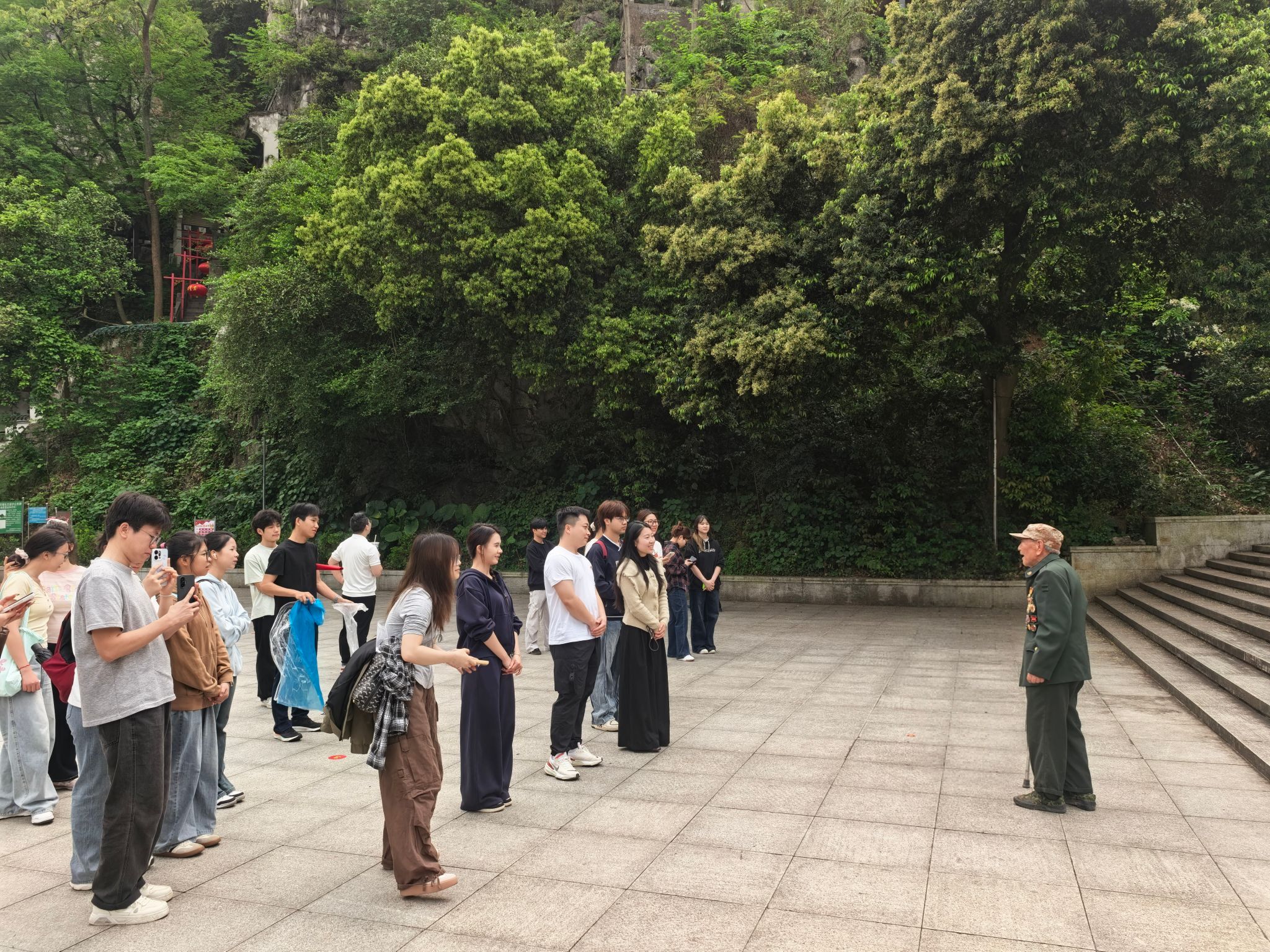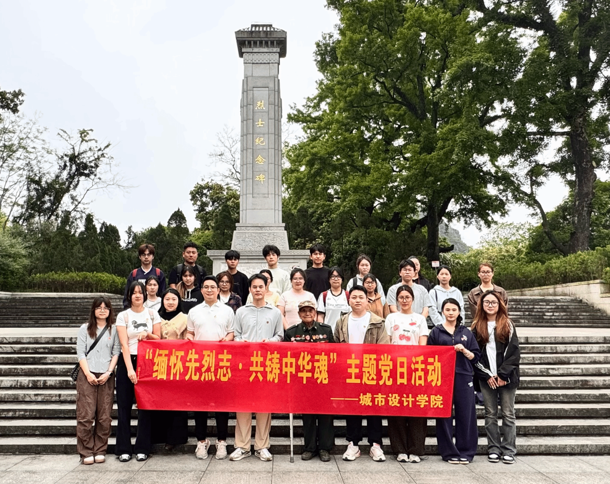 4月8日,城市设计学院组织师生党员赴桂林市七星景区烈士陵园,开展“缅怀先烈志·共铸中华魂”主题活动,活动同时邀请九旬战斗英雄李渭清出席。