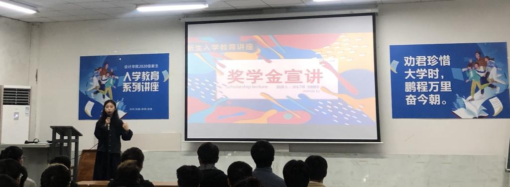 接着,2017级视觉传达专业党员刘婕妤为同学们介绍了奖学金的相关政策。刘婕妤同学首先将学生手册中相关奖学金的种类为大家一一介绍,并告诉大家要多多参与各种竞赛,努力学好每一门科目,积极参加大创项目,争取取得优异的成绩。