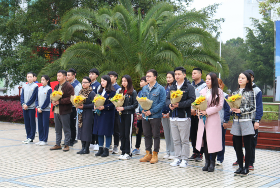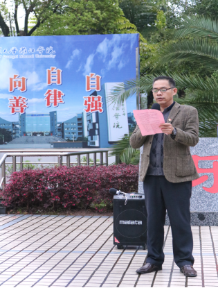 校长杨树喆在升旗仪式上为活动致辞。讲话中,他全面回顾了学校2018年来在深化大部制改革、专业结构格局优化、校企合作推进转型发展、制度建设及办学成果、民生改善和教学设施建设、至善校园文化建设六个方面取得的成绩和突破,对全体师生为此付出的辛勤努力表示感谢。同时,他指出学校的发展还面临不少困难和问题,我们一定要居安思危、未雨绸缪,要以新的姿态和精神风貌,大力学习贯彻全国和全区教育大会精神,以“思想引领、学生为本、铭记初心、激发活力、把握重点”为基本遵循,落实立德树人根本任务,突出教学工作核心地位,健全“三全育人”机制,深化人力资源综合改革,提升综合服务保障能力,努力培养具有开放意识、创新精神、实践能力和“至善”品格的高素质应用技术型人才,谱写好2019年漓江学院教育事业追赶超越的崭新篇章,为国家和地方经济社会改革发展做出新的更大贡献。