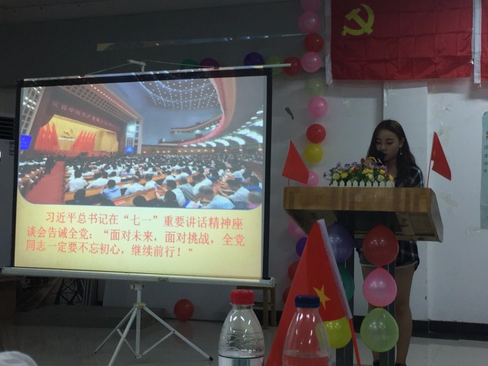 出席本次活动的嘉宾有艺术设计系2016级辅导员陈丹萍老师,艺术设计系组织部成员考评干部。本次团日活动共有77人参加,活动的主要形式是采用PPT演讲,中间穿插各种形式的小节目。乌桐同学在演讲过程中与同学们进行了积极互动,同学们的热情持续高涨,争先发表自己对初心的理解,对未来的憧憬。演讲之后,张庆龄同学上台对习近平总书记的重要讲话精神进行了详细解说,使在场的同学们心灵得到了一次洗礼。幻灯片《我的大学》更是引发了同学们的深思,激励了同学们不忘初心,勇往直前,继续前行!