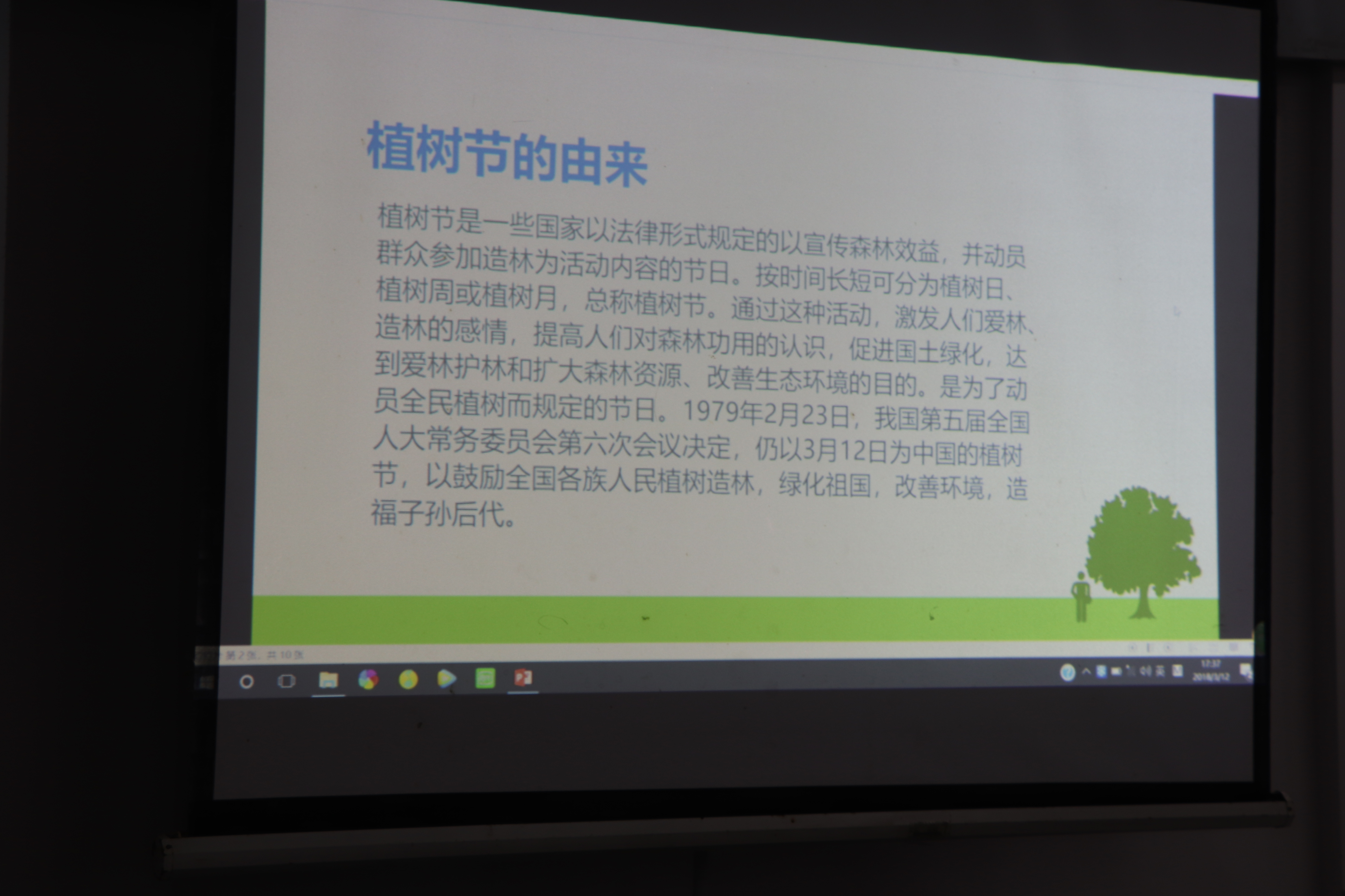 阳春三月,草长莺飞间,冬天的寒意还未褪尽,春天就带着绿色的气息向我们走来。一缕春风吹绿了枝头上的嫩芽,吹绿了地上的小草,也吹动了意气风发的大学生的热情。 正值植树节,2018年3月12日下午5点我系开展了‘绿色校园’环保教育的植树活动。