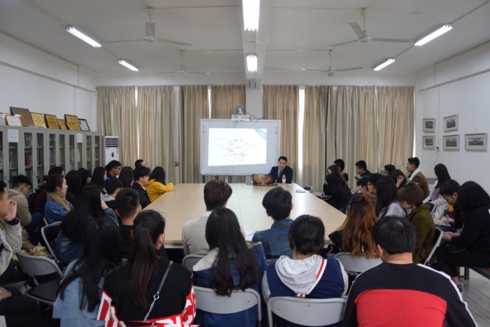 为了进一步增强同学们对大学生创业方面知识的了解,12月3日下午艺术设计系景观设计教研室邀请桂林大学生创业园创业导师孟卓华为设计系学生开展“大学生创新创业”专题的讲座,由党总支副书记王瑞主持本次讲座。