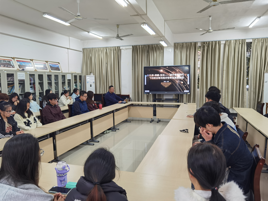 邱璞以“扎根•突破•生长——设计变革时代下的就业观与地方性专业发展路径”为主题,通过分析规划设计行业的“变”与“不变”,以及桂林当地规划设计人才需求的解读,从而帮助在校大学生树立明确的专业发展方向,为下一步的专业学习夯实基础。