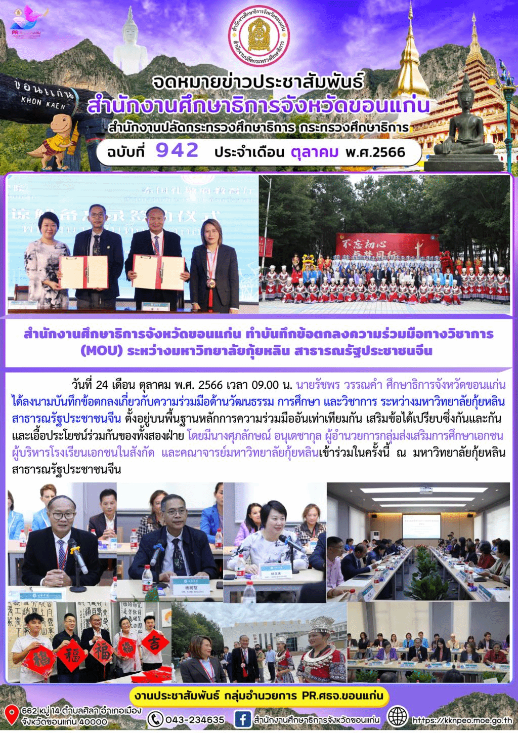 孔敬府教育厅携手(中国)桂林学院,共同签署合作备忘录,构建教育、文化、学术和国际研究的合作!