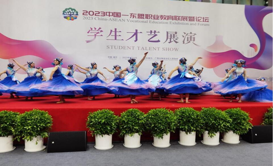 金秋九月,朱槿花开。9月15-16日,以“共建产教集聚融合平台 共享职业教育发展成果”为主题的2023中国-东盟职业教育联展暨论坛在南宁隆重举行。应组委会之邀,我校校长杨树喆率队参加本次联展暨论坛。副校长杨庆庆、发展与质量评估处(对外合作与交流中心)负责人陪同参加联展暨论坛。我校组织教育学院学前教育、舞蹈学专业师生参加联展活动。