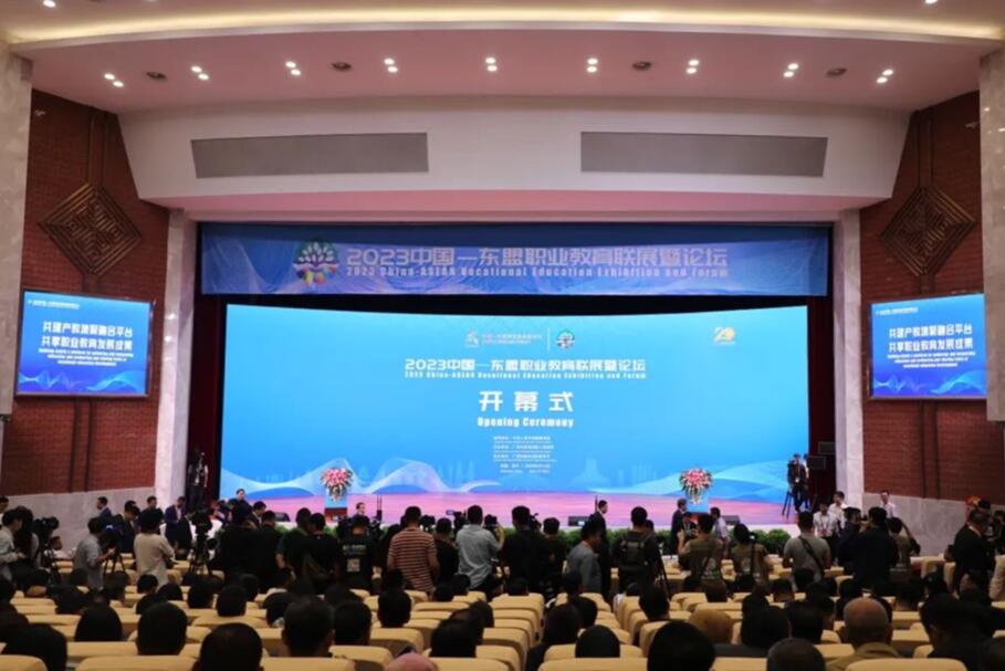 联展暨论坛开幕式、2023中国-东盟职业教育合作发展大会相继在广西建设职业技术学院大礼堂举行。中国广西自治区主席蓝天立、教育部副部长陈杰出席开幕式并致辞,自治区副主席李常官主持开幕式。老挝教育体育部副部长康塔莉·司里彭潘、缅甸科技部副部长昂泽亚、柬埔寨教育青年体育部国务秘书欧姆·罗姆尼等领导和嘉宾出席开幕式和发展大会。东盟各国代表团成员,中国教育部有关司局、各有关省(区、市)教育厅、香港特别行政区职业训练局、澳门特别行政区教育及青年发展局领导,各有关省(区、市)职业教育知名专家,各有关省(区、市)应用型本科高校、高职院校、中职学校负责人,各有关省(区、市)相关企业负责人等参加开幕式和发展大会。发展大会主旨演讲先后由广西自治区教育厅厅长刘友谊、广西国际商务职业技术学院院长王国红主持。10位中外专家和嘉宾发表了主旨演讲。