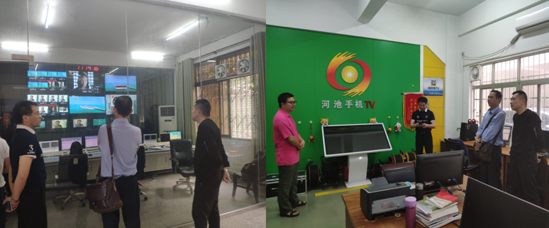 最后,杨校长一行人实地参观了由河池市广播电视台主办的融媒体平台河池手机TV、河池电视台总控室等。