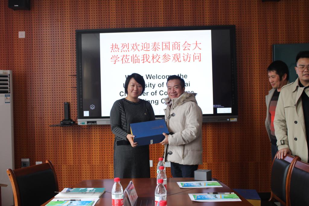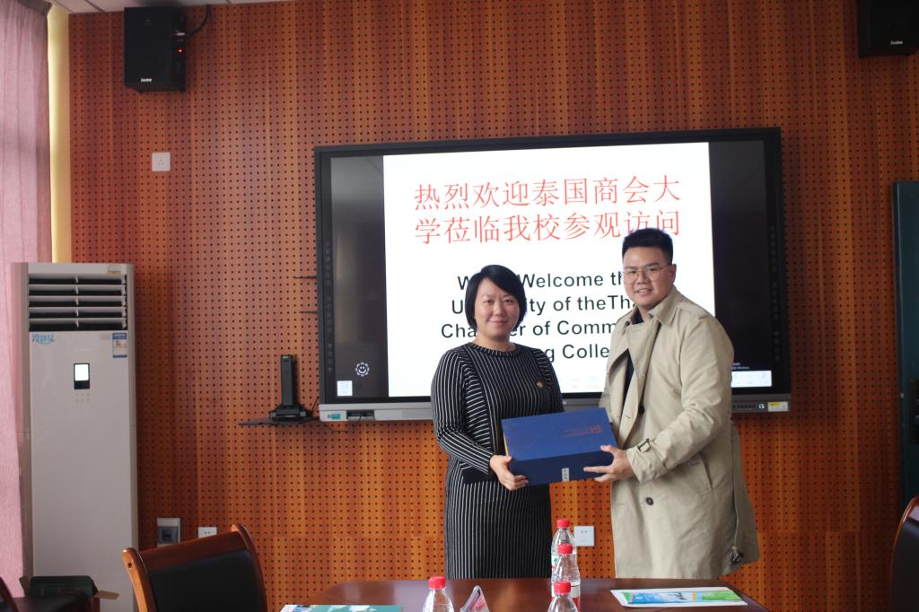 杨庆庆副校长与泰国商会大学人文及应用艺术学院院长互赠礼品