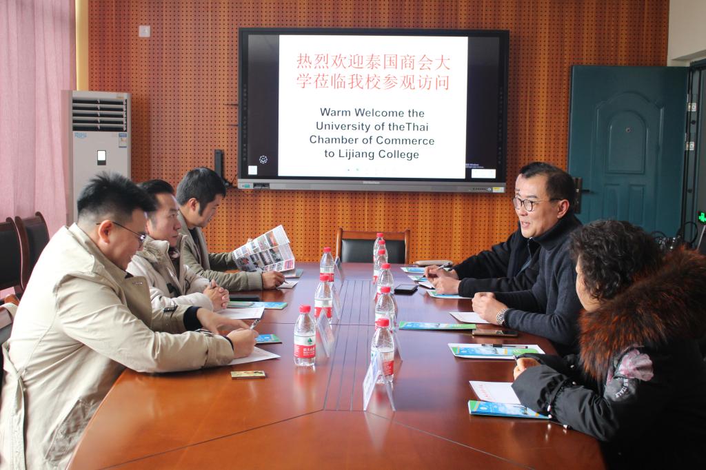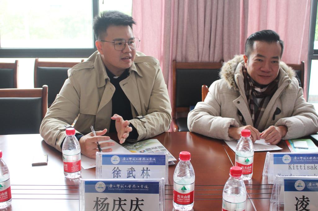 2018年12月13日下午,泰国商会大学副校长徐武林,人文及应用艺术学院院长Kittisak Kerdarunsuksri到我校参观访问。我校副校长杨庆庆,国际交流中心主任凌忠、外语系主任何玲,教务与科研管理处处长杨杰夫参加了会议。