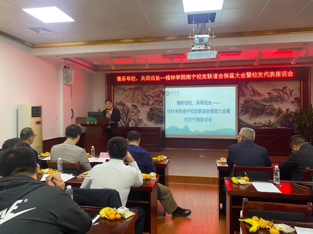 学校副董事长郑善华从学校办学规模、办学特色、内涵发展及转设为桂林学院的新征程方面介绍了学校办学20年来建设发展情况,他充分肯定在南宁校友在各自岗位上取得的成绩和为南宁各项事业做出的贡献。郑善华希望,南宁校友联谊会校友能够成为传递桂院温度、饱含至善情怀、深受校友喜爱的精神家园,他表示,校友是学校对外的一张靓丽名片,学校的发展离不开广大校友的大力支持,希望校友们持续关注、关心母校的发展,为母校发展建言献策,并诚挚邀请校友在母校建校20周年暨桂林学院揭牌之际相约桂院、共商发展。