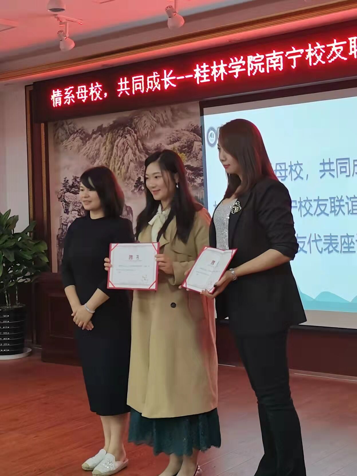 校友总会秘书长秦丽芸为南宁校友联谊会秘书长、副秘书长颁发聘书
