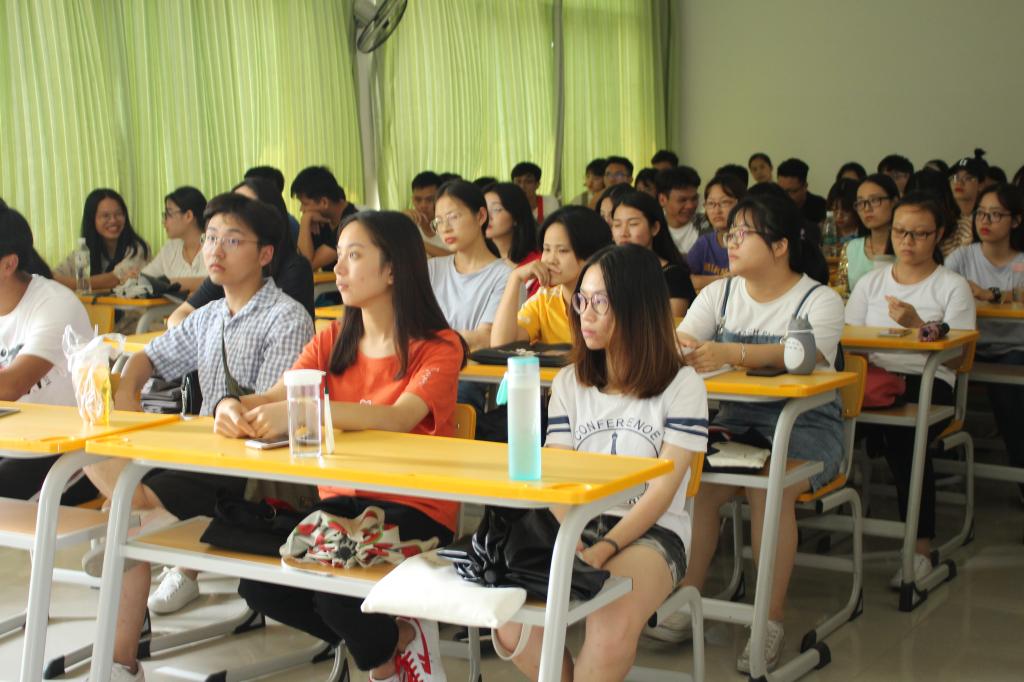 学生在认真的听项目宣讲会