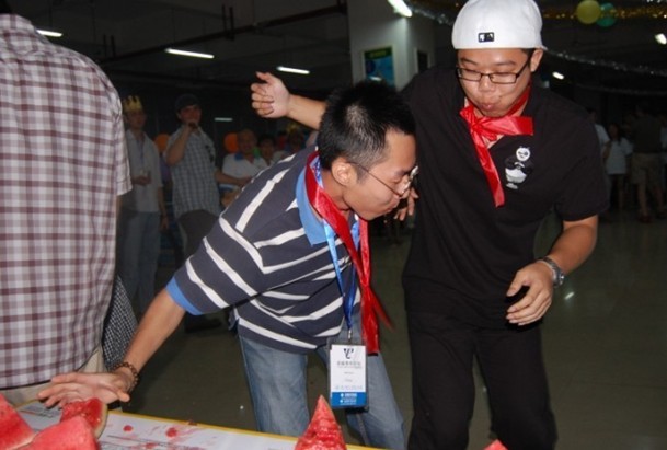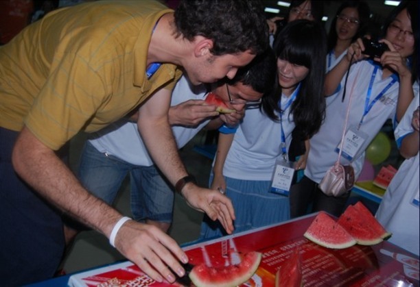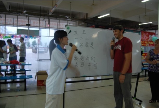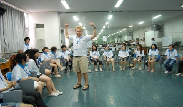 YLP丰富课外活动如虎添翼。“我教外国人学中文”课外活动来了一场师生角色大转换。各组学员派代表将本组的外教们拉上讲台,在黑板上写下简单的中文“ 桂林上水甲天下”、“中国人我爱你”、“有朋自远方来,不亦乐乎”等等。外教们有趣的发音,机智的反应逗得在场师生捧腹大笑。其次,地道的“美国游戏之夜“在外籍教师的带领下带给学员们无穷的乐趣。这不仅仅是游戏,更让学员们学会团队配合,学会劳逸结合。还有最受大众喜爱的“吃西瓜比赛”,怎么能少了外籍教授们奔跑、狂吃的可爱模样,本次吃西瓜比赛加大难度,采取两人三足的形式。所谓强强联合,各自使出八班技能,更有外教开玩笑说道:近期再也不要提起西瓜。每年的活动,总会充满惊喜与感动,那就是精心的为7月份生日的寿星们庆祝生日。温馨的生日歌,闪烁的荧光棒,精心准备的蛋糕与礼物,让YLP感受大家庭的温暖,享受着点滴的快乐。这份感动依旧延续,并陪伴我们走过2011年这个难忘的暑假。