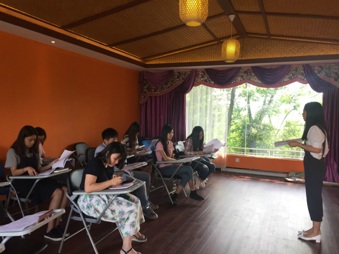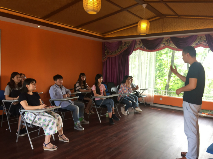 5月16日下午,国际交流中心主任和工作人员在我校语言与文化体验中心泰国馆,为经济政法系7名即将赴泰国商会大学见习的学生组织行前教育培训会。