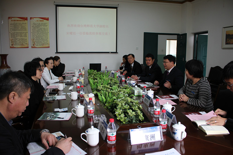 赖仿书记首先对远道而来的客人表示了热烈的欢迎。接着向来宾简要介绍了我院的办学历史,学科建设情况以及学院近年来所取得的成绩等。随后杨庆庆副院长通过数据对我院中外办学情况做了详细的说明,特别是我院学生赴台湾高校以及台湾师范大学学习的情况。