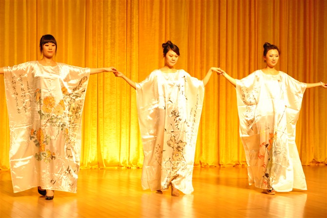 一段出自许文龙同学之手的书法服装走秀拉开了节目的序幕。在此次访谈节目中,许文龙与凌忠老师、赵美川老师、外教Ryan一起进行访谈。访谈中赵美川老师谈到许文龙是勤奋认真的学生,并表示他这次的赴美学习交流是一次很好的学习机会,最后表达了她对许文龙同学的美好祝愿。凌忠老师对美国达拉斯浸会大学、加利福尼亚浸会大学进行了简单的介绍,而我们的外教Ryan正是毕业于美国达拉斯浸会大学,对于母校,Ryan更是热情地介绍着美国教学的特点、师资力量、教学设备、校园文化及校园环境。许文龙还赠送外教Ryan中国风水墨画留作纪念。