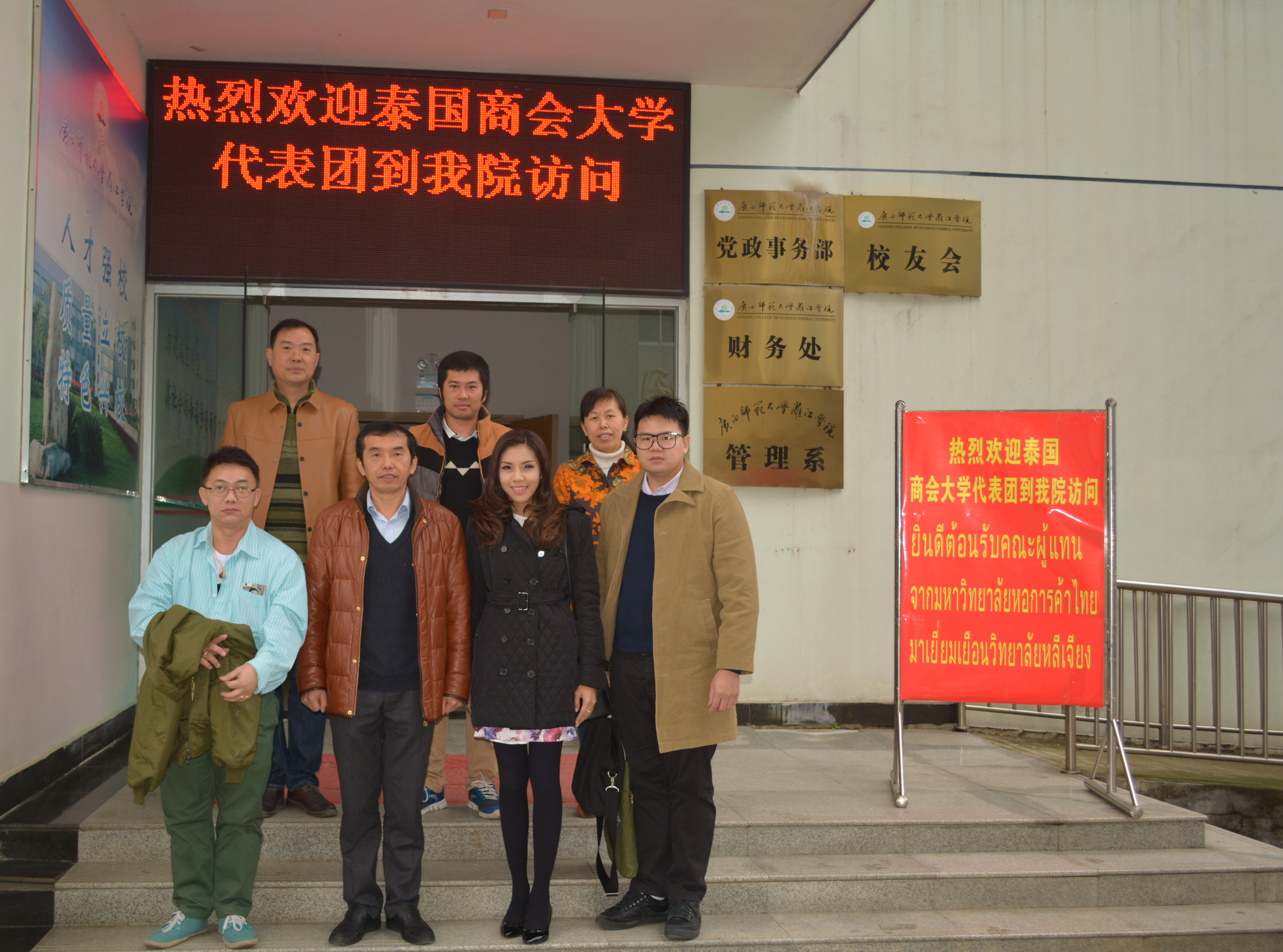 泰国商会大学外事副校长Suttinee Chuanchaisit博士随后表示,本次赴桂,她对桂林的山水风貌、城市形象,我院的校园建设、学生的精神状态都留下了极佳的印象,希望能通过今后的合作,增加更多了解中国文化、了解桂林文化、了解漓院学生的宝贵机会。会见结束后,国际交流中心主任陪同商会大学代表团一行参观了校园,中文系主任、外语系主任及泰语教研室主任随后陪同在漓院咖啡座谈,探讨各系各专业下阶段合作办学细节。