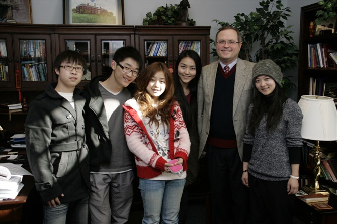 学生代表与达拉斯浸会大学副校长RICK.R.GREGERY(右二)