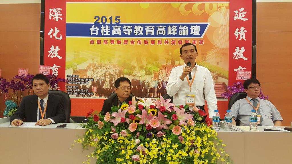 随后,台湾教育大学系统总校长吴清基及广西教育厅规划处处长分别做了主题讲话;在接下来的论文发表论坛中,我院理学系主任就加强桂台教育交流、助力学院转型发展的主题进行了发言。