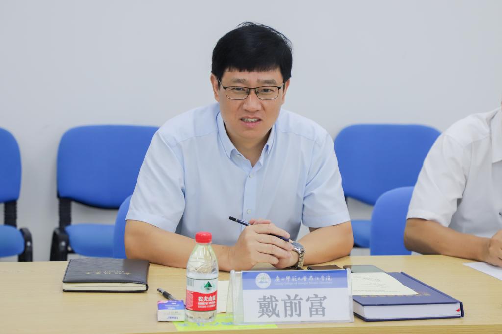 自治区南溪山医院党委书记戴前富在发言中表示,院方非常重视与漓江学院建立的战略合作伙伴关系,本次签约是积极响应国家医药卫生体制改革的一个重大举措,也是服务地区经济建设的一件大事。南溪山医院与漓江学院一直并肩“同行”,从学校初创的办学地址与南溪山医院同址,又与学校有着共同的抗疫目标,签订合作协议后双方将成为更加亲密的合作伙伴。他表示,南溪山医院将为学校的发展提供更好的医疗和健康支持,他希望双方在文化建设、艺体活动方面也能取得丰硕的成果,希望双方积极探索校企合作新的体制机制,通过广泛扎实的交流合作,把双方合作推向新高度。