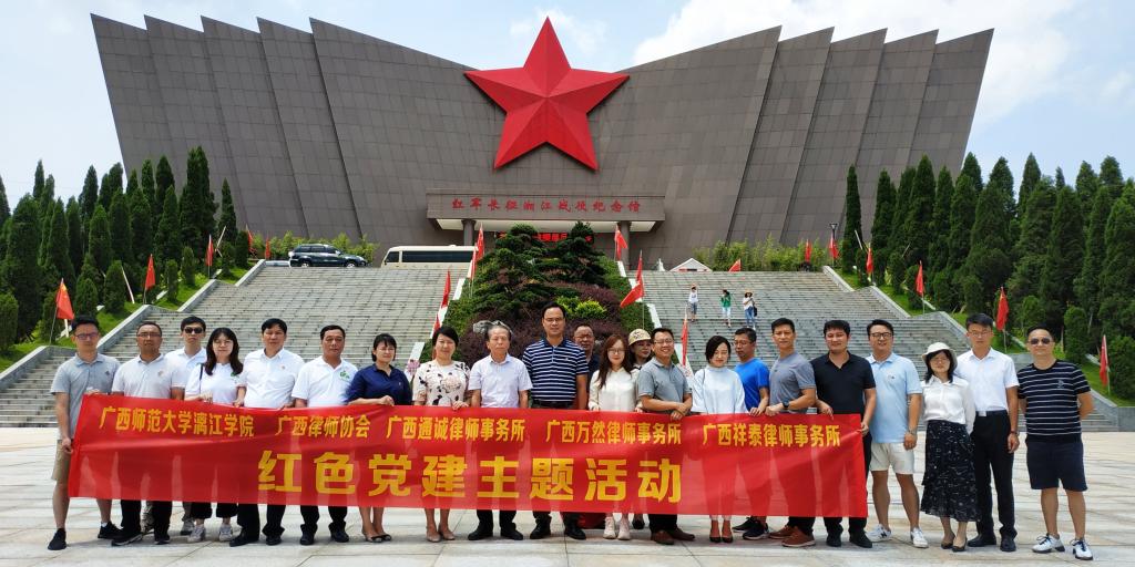 6月13日,经过多方共同策划,在建党99周年即将来临的时候,我校与广西律师协会、广西通诚律师事务所、广西万然律师事务所、广西祥泰律师事务所来到红军长征湘江战役纪念馆,联合开展红色主题教育活动,追寻红军足迹、告慰革命先烈,传承红色基因。