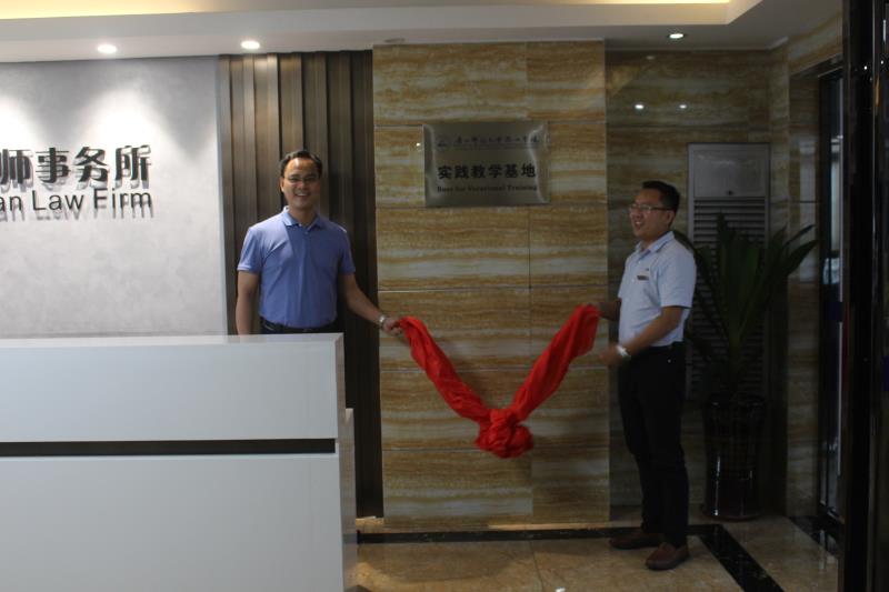 活动最后,校党委副书记、纪委书记、副校长邓志平代表漓江学院与万然所主任曾锋”共同为校外实践教学基地揭牌。