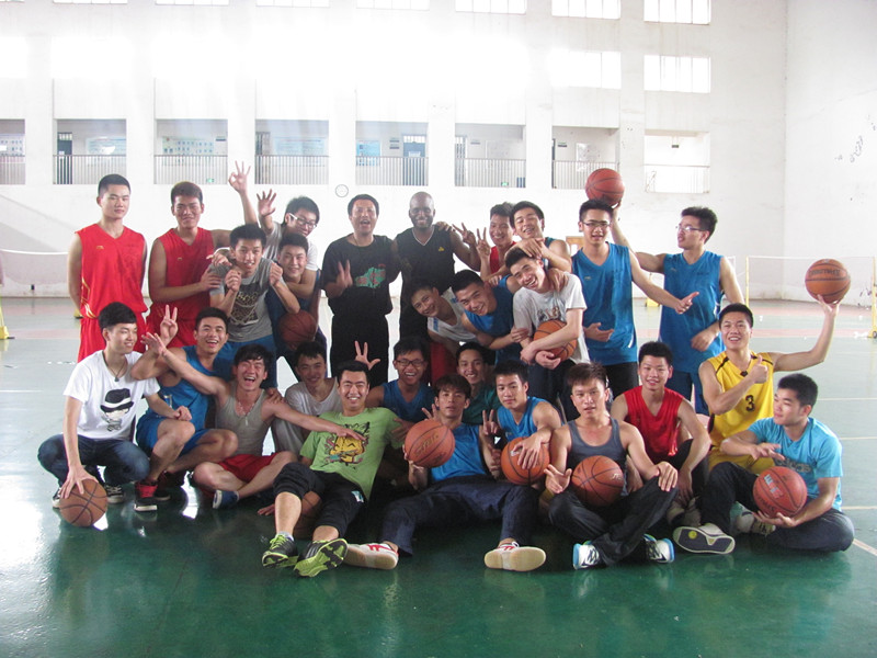 “学院篮球场上,出现了一位灌篮高手!他身材修长,伸手敏捷,仿佛让人联想到CBA的比赛现场!学院的球场上出现了不同肤色的篮球健将。”体育系一名正在打球的同学介绍到。这位篮球高手就是学院一名酷爱篮球的外教Julius,他现在正由英语教师化身为篮球教练,同时也在跟体育系的同学们切磋球技!