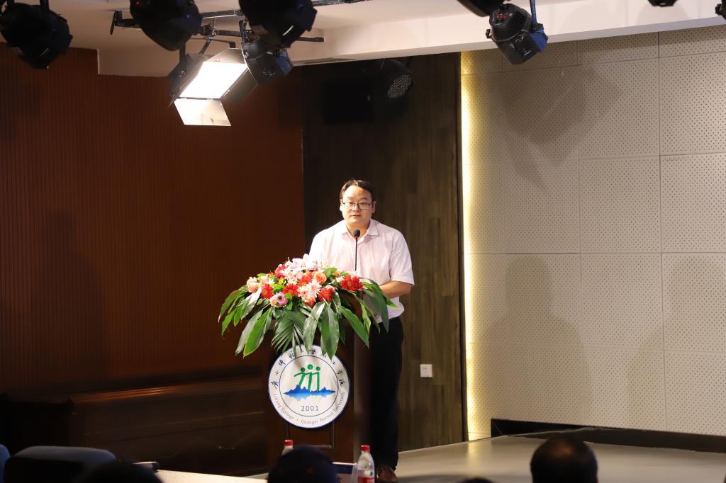 杨校长在致辞中首先对出席仪式活动的嘉宾表示欢迎,并祝贺“粤嵌电子工程学院”揭牌成立和电子信息工程专业2019级首届卓越班开班。杨校长指出,我校能与广州粤嵌通信科技股份有限公司这样事业辉煌、在国内外知名的企业共建行业学院,这无疑是该公司对我校以往办学成绩、办学实力的充分信赖,也是对校企双方过去将近一年的友好沟通协商的肯定和总结,更拉开了我们双方在新时代更深入的、全方位合作的序幕。他强调,校企合作、产教融合这一全新的办学模式,本质上也就是一种以市场和社会需求为导向的学校运行机制。对我校这样一所地方本科高校而言,走校企合作之路,争取并依靠企业的支持和参与,主动服务企业的需求,是培养高素质应用型人才,实现学校又好又快地转型发展的根本途径。杨校长最后表示,有电子信息工程专业2019级首届卓越班同学们的勤奋学习作为基础,通过合作双方的共同努力,在协议的框架内,优势互补、工学结合,充分展开各种合作,一定能够共同把合作推向新的高度,达到双方互利共赢,我校培养应用型人才发展的路子一定会越走越宽、越走越辉煌。