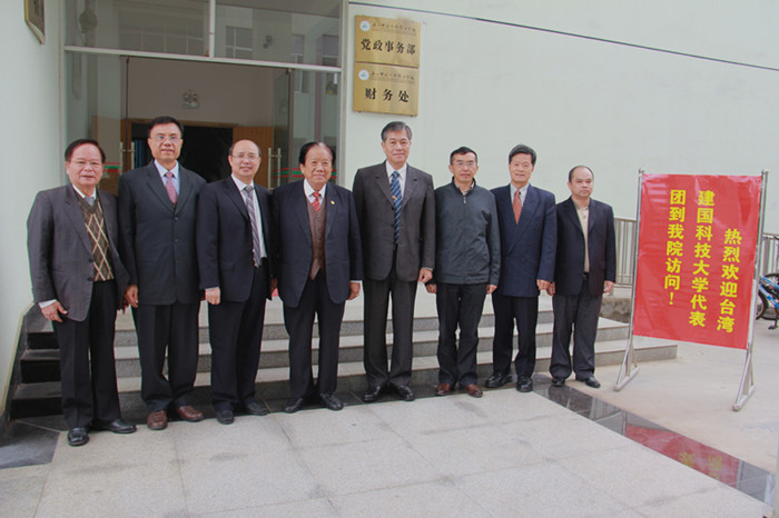 学院领导与台湾建国科技大学董事长吴联星(左四)、校长陈繁兴(右四)一行五人合影