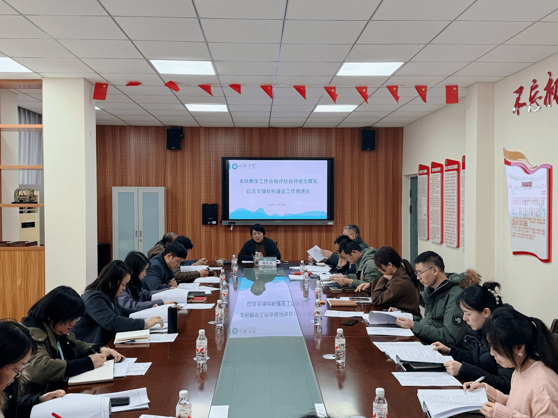为进一步推进学校本科教学工作合格评估自评报告及相关支撑材料的准备工作,1224日,学校在知善楼8312会议室组织召开专题推进会。副校长杨庆庆出席并主持会议。学校办公室、发展规划处、教务处、学工处、校团委等相关单位负责人二级学院分管教学副院长参加会议。